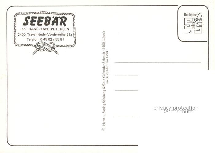73323195 Travemuende Ostseebad Gaststaette Restaurant Seebaer am Hafen postalisch nicht gelaufen Erhaltung siehe scans [FriedD77] KatCode: 11110001003000