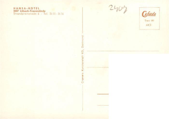 73940363 Travemuende Ostseebad Hansa Hotel postalisch nicht gelaufen Erhaltung siehe scans [FriedD77] KatCode: 11110001003000