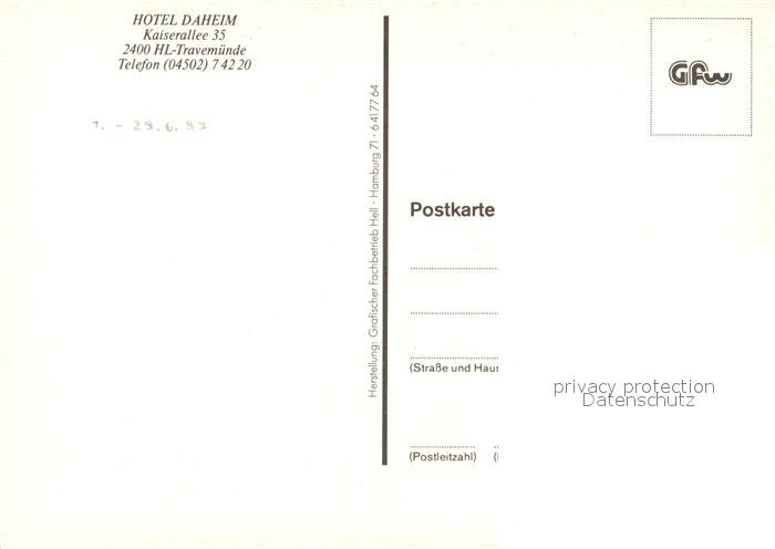 73243452 Travemuende Ostseebad Hotel Daheim postalisch nicht gelaufen Erhaltung siehe scans [KathaD81] KatCode: 11110001003000