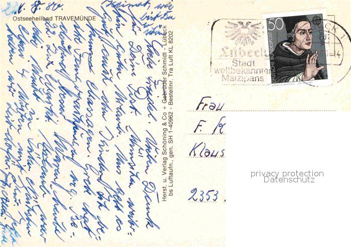 72839590 alte Postkarte Travemuende Ostseebad Hotel Neptun postalisch gelaufen Erhaltung siehe scans [AndreD76] KatCode: 11110001003000