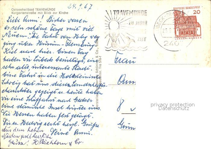 72106929 alte Postkarte Travemuende Ostseebad Kurgartenstrasse Kirche postalisch gelaufen Erhaltung siehe scans KatCode: 11110001003000