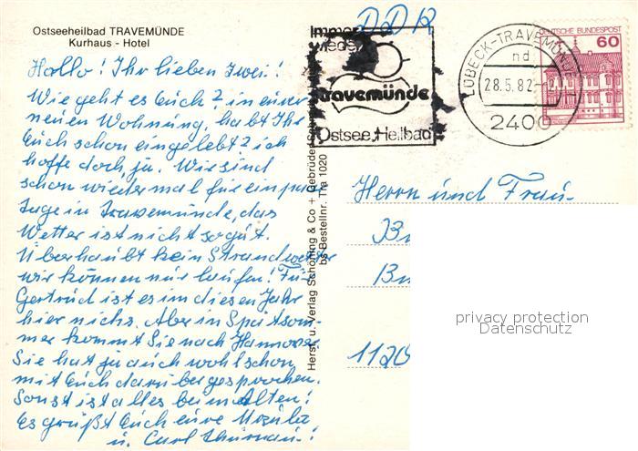 73224595 alte Postkarte Travemuende Ostseebad Kurhaus Hotel postalisch gelaufen Erhaltung siehe scans [KathaD81] KatCode: 11110001003000
