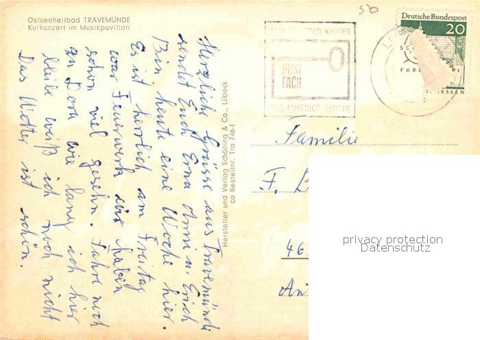 72914942 alte Postkarte Travemuende Ostseebad Kurkonzert Musikpavillon postalisch gelaufen Erhaltung siehe scans [FriedD77] KatCode: 11110001003000