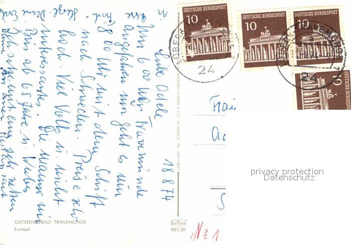72905683 alte Postkarte Travemuende Ostseebad Kursaal postalisch gelaufen Erhaltung siehe scans [FriedD77] KatCode: 11110001003000