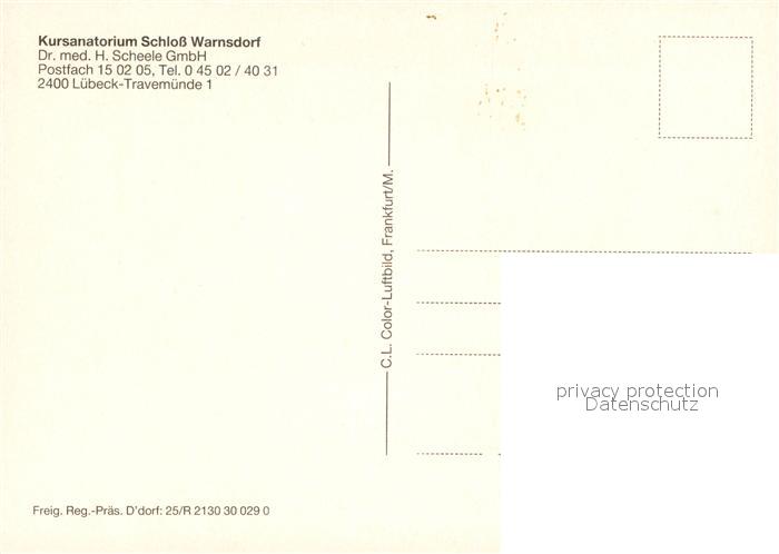 73543559 Travemuende Ostseebad Kursanatorium Schloss Warnsdorf Fliegeraufnahme postalisch nicht gelaufen Erhaltung siehe scans [WerneD78] KatCode: 11110001003000