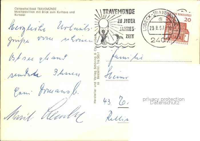 72590731 alte Postkarte Travemuende Ostseebad Musikpavillon mit Kurhaus und Kursaal postalisch gelaufen Erhaltung siehe scans [WerneD78] KatCode: 11110001003000
