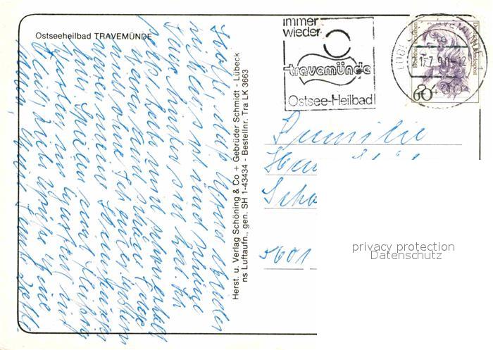 72831772 alte Postkarte Travemuende Ostseebad Ostseeheilbad Hafen Faehre Fliegeraufnahme postalisch gelaufen Erhaltung siehe scans [FriedD77] KatCode: 11110001003000