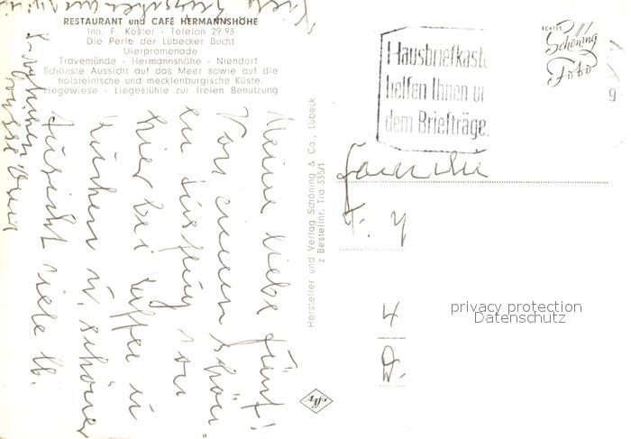 72947961 alte Postkarte Travemuende Ostseebad Panorama Blick von der Hermannshoehe Brodtener Ufer Strand Promenade postalisch gelaufen Erhaltung siehe scans [FriedD77] KatCode: 11110001003000