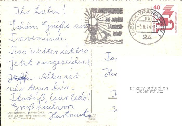 72210704 alte Postkarte Travemuende Ostseebad Priwall Badestrand Travemuendung Fliegeraufnahme postalisch gelaufen Erhaltung siehe scans KatCode: 11110001003000