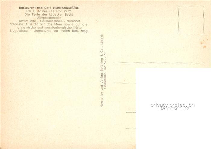 72969771 Travemuende Ostseebad Restaurant Cafe Hermannshoehe postalisch nicht gelaufen Erhaltung siehe scans [LiesaD40] KatCode: 11110001003000