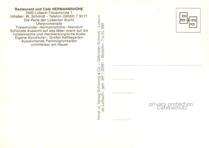 73321049 Travemuende Ostseebad Restaurant Cafe Hermannshoehe Fliegeraufnahme postalisch nicht gelaufen Erhaltung siehe scans [WerneD78] KatCode: 11110001003000