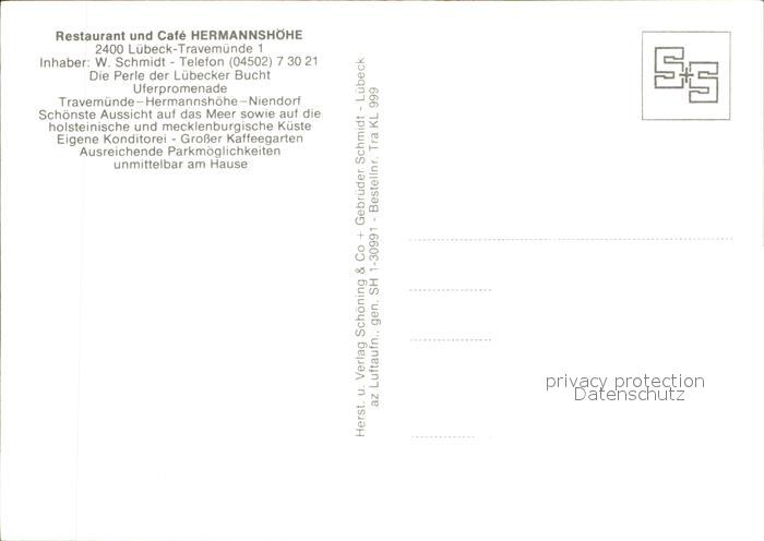 72036897 Travemuende Ostseebad Restaurant Cafe Hermannshoehe Fliegeraufnahme postalisch nicht gelaufen Erhaltung siehe scans KatCode: 11110001003000