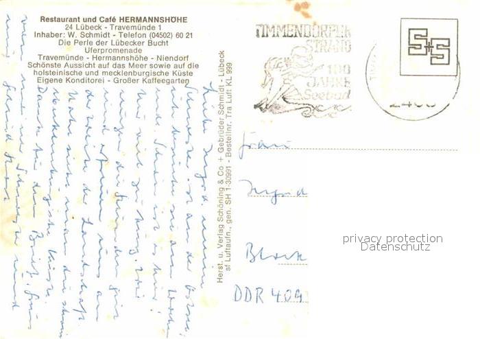 72639652 alte Postkarte Travemuende Ostseebad Restaurant Cafe Hermannshoehe Luebecker Bucht Fliegeraufnahme postalisch gelaufen Erhaltung siehe scans [FriedD77] KatCode: 11110001003000