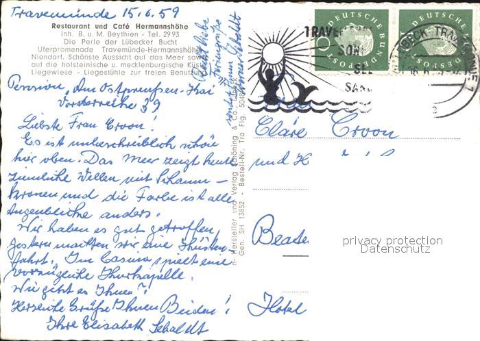 alte Postkarte Travemuende Ostseebad Restaurant Cafe Hermannshoehe Luebecker Bucht Fliegeraufnahme postalisch gelaufen Erhaltung siehe scans