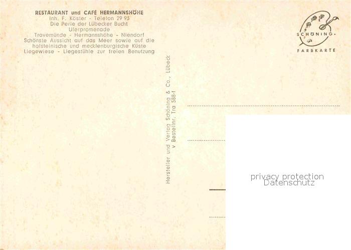 72647507 Travemuende Ostseebad Restaurant Cafe Hermannshoehe Luebecker Bucht Uferpromenade postalisch nicht gelaufen Erhaltung siehe scans [WerneD78] KatCode: 11110001003000