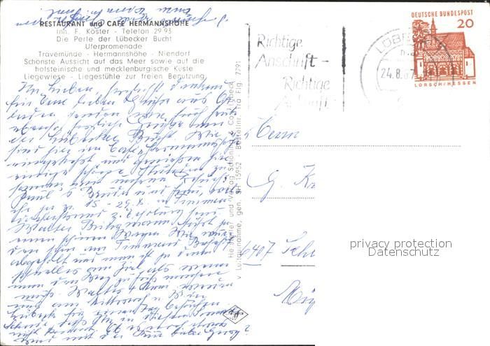 72007273 alte Postkarte Travemuende Ostseebad Restaurant und Cafe Hermannshoehe Fliegeraufnahme postalisch gelaufen Erhaltung siehe scans KatCode: 11110001003000