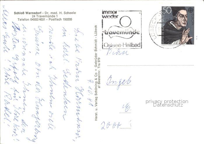 72378524 alte Postkarte Travemuende Ostseebad Schloss Warnsdorf postalisch gelaufen Erhaltung siehe scans KatCode: 11110001003000