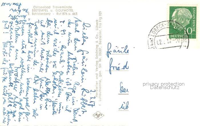 73215994 alte Postkarte Travemuende Ostseebad Seetempel Golfhotel Strand Fliegeraufnahme postalisch gelaufen Erhaltung siehe scans [FriedD77] KatCode: 11110001003000