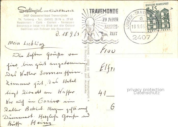 72529271 alte Postkarte Travemuende Ostseebad Seetempel und Golfhotel Fliegeraufnahme postalisch gelaufen Erhaltung siehe scans KatCode: 11110001003000