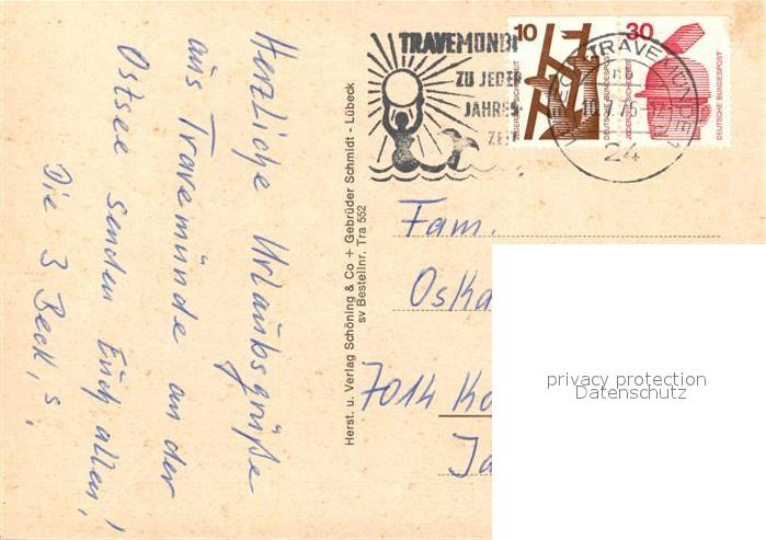 73226642 alte Postkarte Travemuende Ostseebad Strand Faehrschiff Hafen Konzerthalle postalisch gelaufen Erhaltung siehe scans [KathaD81] KatCode: 11110001003000