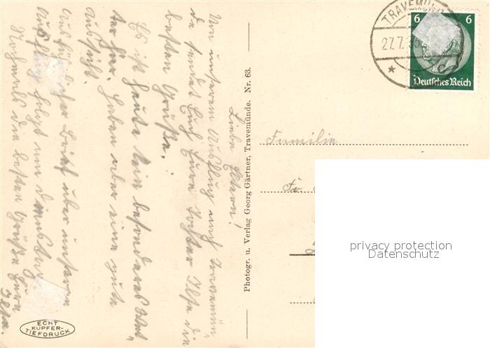 73142899 alte Postkarte Travemuende Ostseebad Strand Kupfertiefdruck postalisch gelaufen Erhaltung siehe scans [FriedD77] KatCode: 11110001003000