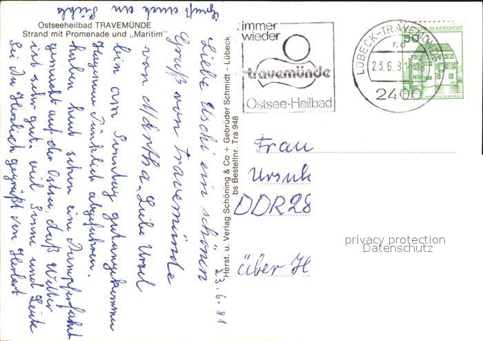 72614448 alte Postkarte Travemuende Ostseebad Strand Promenade Hotel Maritim postalisch gelaufen Erhaltung siehe scans [WerneD78] KatCode: 11110001003000