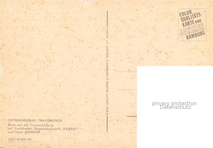73783832 Travemuende Ostseebad Yachthafen Segelschulschiff Passat Hotel Maritim postalisch nicht gelaufen Fliegeraufnahme Erhaltung siehe scans [FriedD77] KatCode: 11110001003000