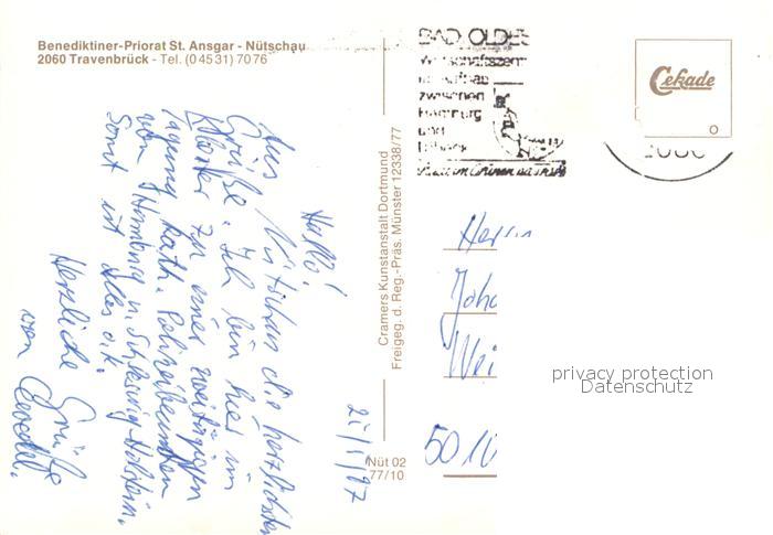 73648017 alte Postkarte Travenbrueck Benediktiner Priorat St Ansgar-Nuetschau Fliegeraufnahme postalisch gelaufen Erhaltung siehe scans [WerneD78] KatCode: 11110001062092