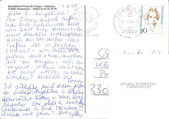 72421177 alte Postkarte Travenbrueck Benediktiner Priorat St. Ansgar Nuetscheu postalisch gelaufen Erhaltung siehe scans KatCode: 11110001062092