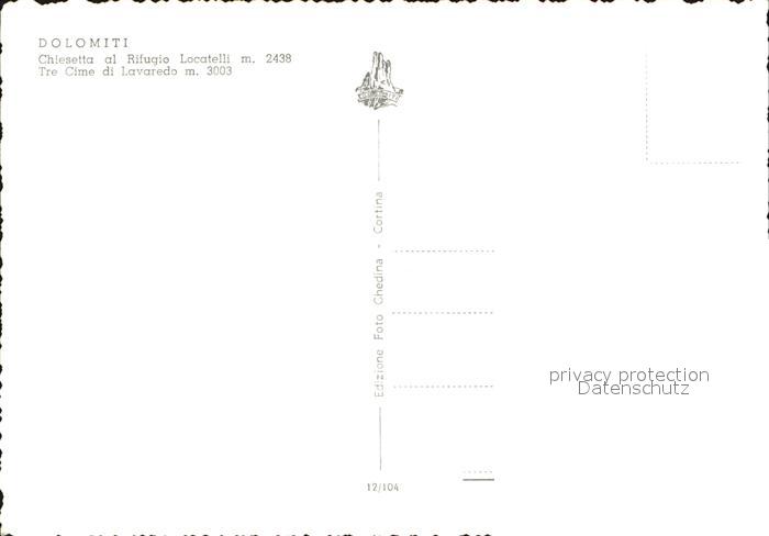 Tre Cime Di Lavaredo Chiesietta al Rifugio Locatelli Dolomiten Kapelle postalisch nicht gelaufen Erhaltung siehe scans [FriedD77]