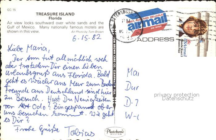 72439936 old postcard Treasure Island Fliegeraufnahme postalisch gelaufen Erhaltung siehe scans KatCode: 14140