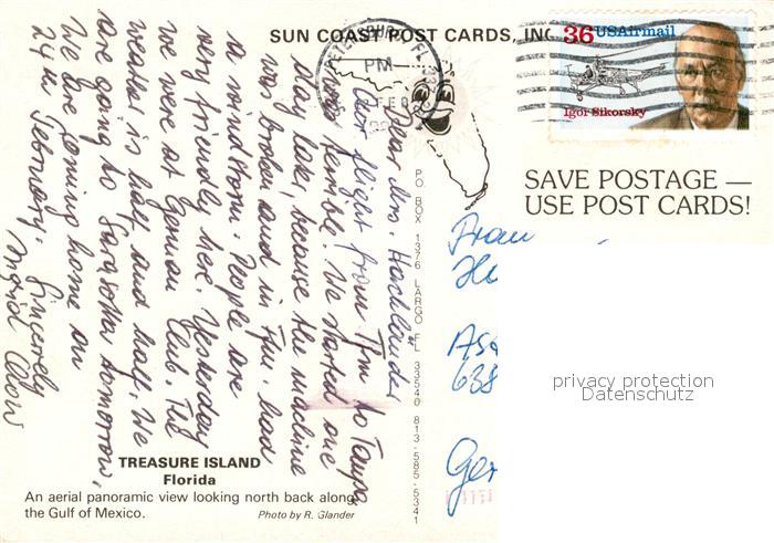 73165472 old postcard Treasure Island Fliegeraufnahme postalisch gelaufen Erhaltung siehe scans [NatalD47] KatCode: 14140