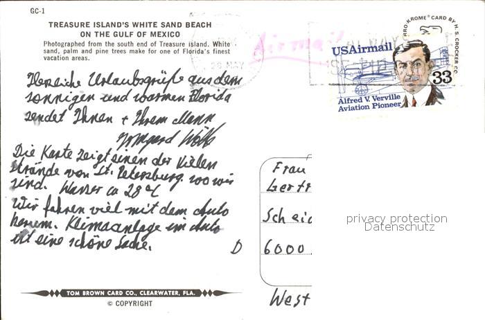72504658 old postcard Treasure Island White Sand Beach Gulf of Mexico postalisch gelaufen Erhaltung siehe scans KatCode: 14140