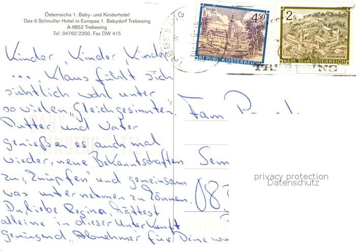 73112056 alte Postkarte Trebesing Baby Kinderhotel postalisch gelaufen Erhaltung siehe scans [NatalD47] KatCode: 11390212020638