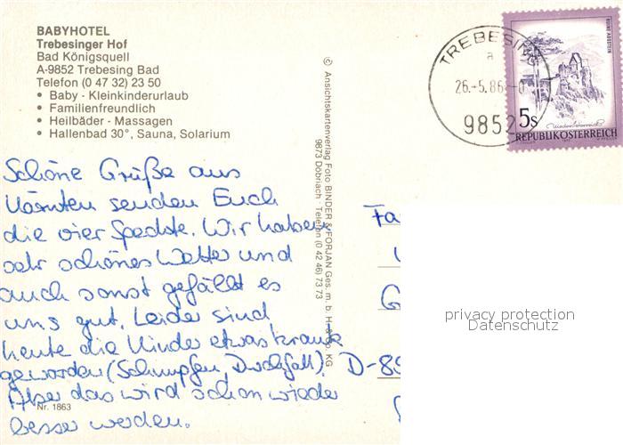 12909646 alte Postkarte Trebesing Babyhotel Trebesinger Hof postalisch gelaufen Erhaltung siehe scans [AndreD76] KatCode: 11390212020638