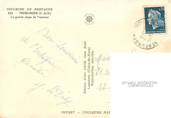 13662336 Trebeurden La grande plage de Tresmeur postalisch gelaufen Erhaltung siehe scans [WerneD78] carte postale Wern Katcode 11170022322343