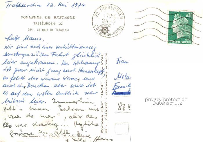 12641579 carte postale Trebeurden Strand postalisch gelaufen Erhaltung siehe scans [KathaD79] KatCode: 11170022322343