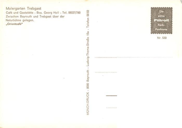 73885270 Trebgast Bayern Malergarten Trebgast Cafe und Gaststaette postalisch nicht gelaufen Erhaltung siehe scans [WerneD78] KatCode: 11110009477158