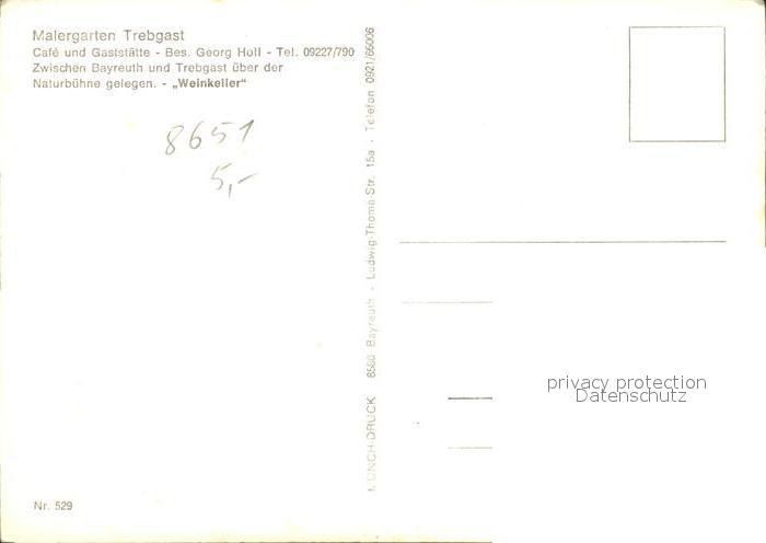 72036503 Trebgast Cafe und Gaststaette Malergarten Trebgast Weinkeller postalisch nicht gelaufen KatCode: 11110009477158