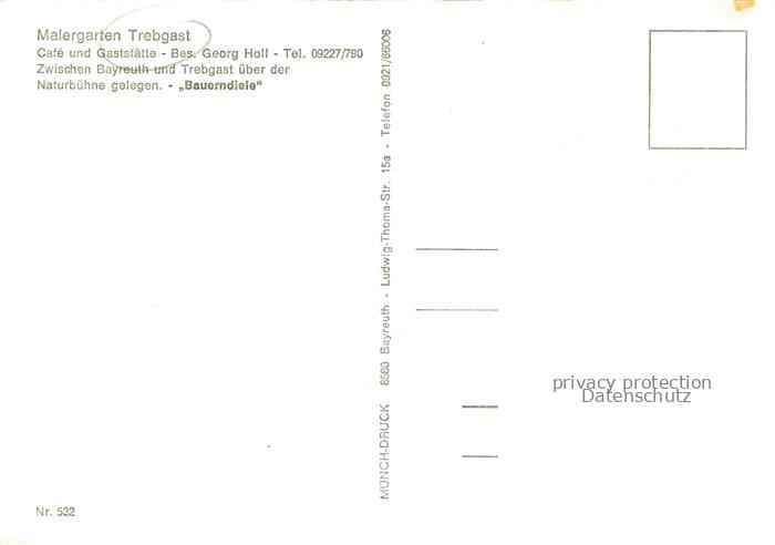 74040574 Trebgast Kulmbach Bayern Malergarten Trebgast Café Gaststaette Bauerndiele postalisch nicht gelaufen Erhaltung siehe scans [FriedD77] KatCode: 11110009477158
