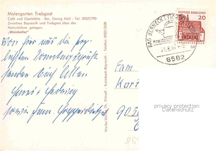 72751845 alte Postkarte Trebgast Malergarten Weinkeller postalisch gelaufen Erhaltung siehe scans [KathaD81] KatCode: 11110009477158