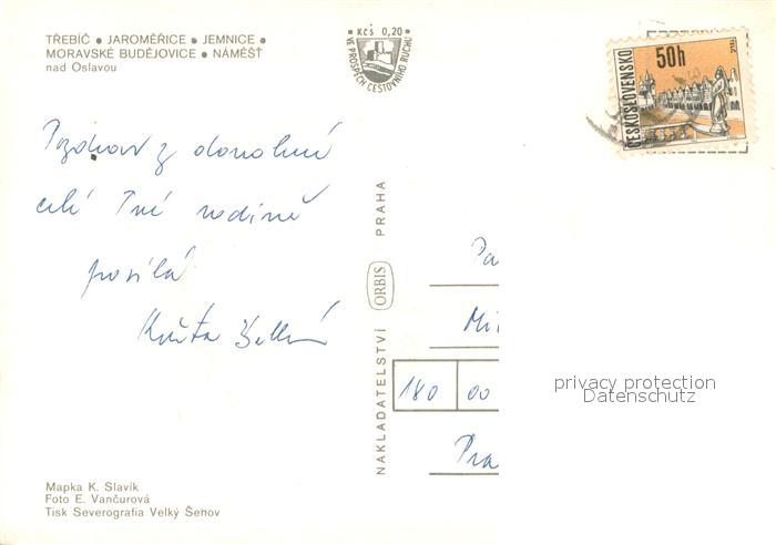 old postcard Trebic Trebitsch und Umgebung Landkarte Jaromerice Jemnice Moravske Budejovice Namest nad Oslavou postalisch gelaufen Erhaltung siehe scans [FriedD77]