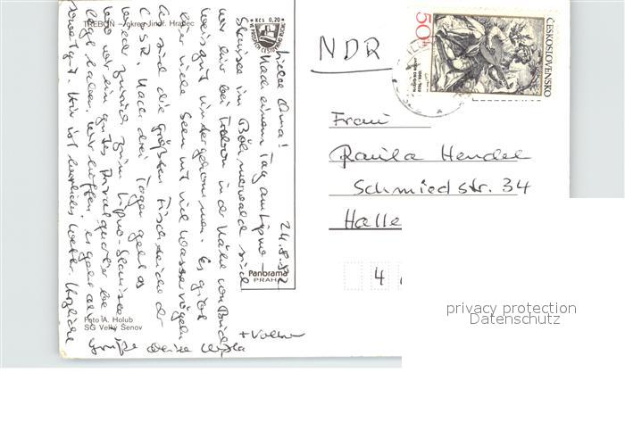 old postcard Trebon Czechia Jokres Jindr Hradec postalisch gelaufen Erhaltung siehe scans [WerneD78 kt108box]