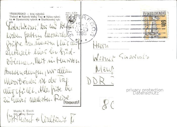 old postcard Trebon Czechia mit Landkarte Seen postalisch gelaufen Erhaltung siehe scans