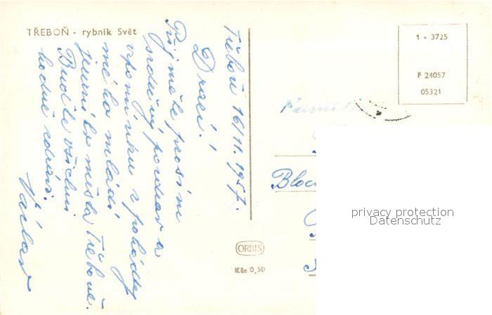 old postcard Trebon Czechia rybnik Svet Seepartie postalisch gelaufen Erhaltung siehe scans [LiesaD40]