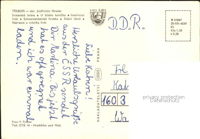 Trebon Czechia Svinska brana Interhotel Svet Schwarzenberska hrobka Statni lazne Rekreace u rybnika Svet postalisch nicht gelaufen Erhaltung siehe scans
