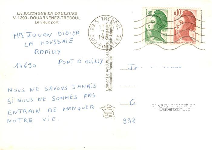 13287257 carte postale Treboul Douarnenez Fliegeraufnahme Port postalisch gelaufen Erhaltung siehe scans [NatalD47] KatCode: 11170029429046