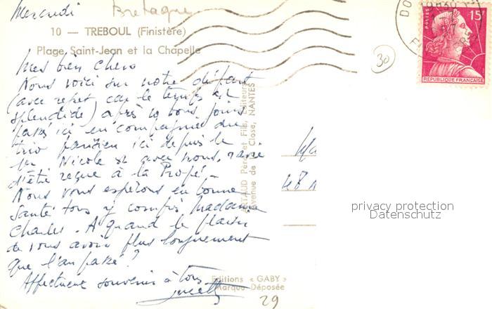 13498293 carte postale Treboul Douarnenez Plage Saint Jean et la Chapelle postalisch gelaufen Erhaltung siehe scans [FriedD77] KatCode: 11170029429046