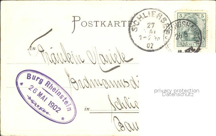 72291790 alte Postkarte Trechtingshausen Burg Rheinstein postalisch gelaufen Erhaltung siehe scans KatCode: 11110007339058