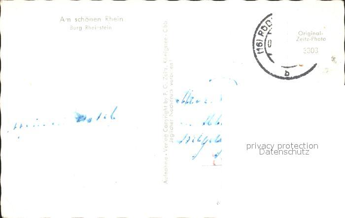 72062846 alte Postkarte Trechtingshausen Burg Rheinstein postalisch gelaufen Erhaltung siehe scans KatCode: 11110007339058